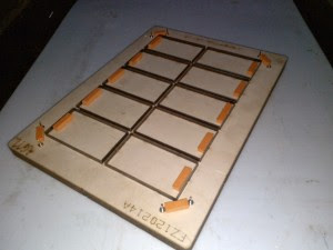 A legegyszerűbb megoldás, ha a szerszámtestre szivacsos anyagot ragaszt, majd arra pozícionáló kartoncsíkokat, a fenti ábra szerint.